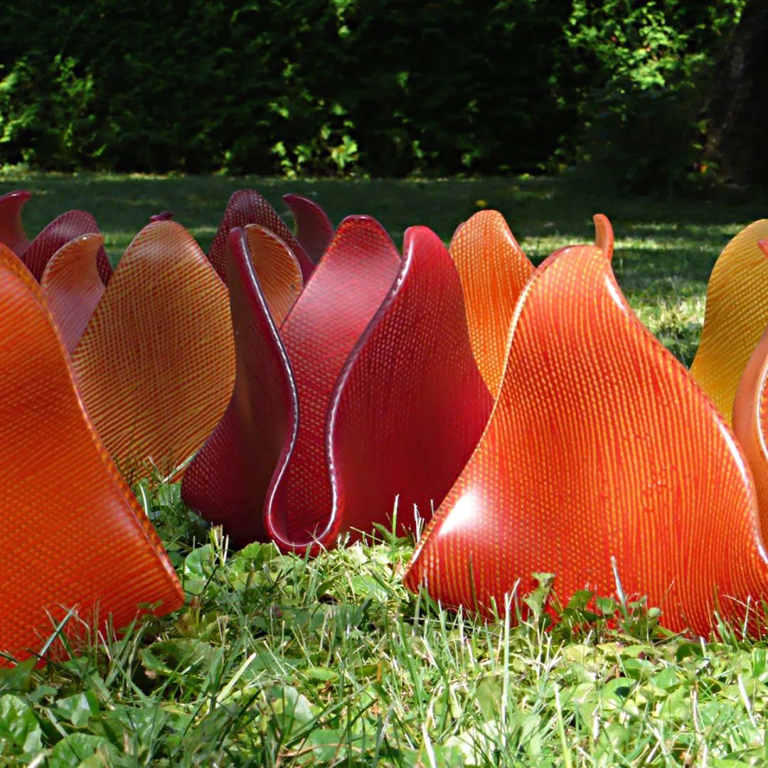 該系列中的作品均采用了藝術(shù)家的標(biāo)志性材料,Seufert 的 PVC 和 Svensson 的 Steel。雖然兩位藝術(shù)家的創(chuàng)作都植根于非貴重材料并采用幾何形式,但他們各自的靈感卻有所不同。