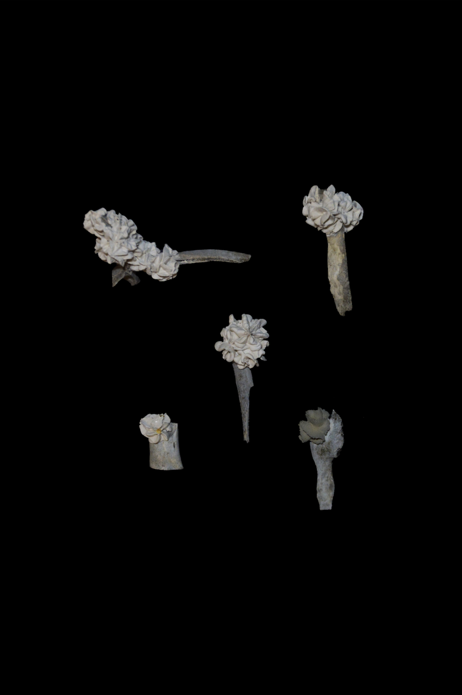 我在安特衛普的一個地堡里虛構建造了一間城市考古實驗室(建立于2430)邀請觀眾進入這個沉浸式空間來探索未來的考古發現和檔案。在這里展示的物品反映了21世紀城市生活的碎片。比如:建筑工地的磚塊,超級市場的收據單,房屋住宅的柵欄以及街道路面的口香糖,這些可識別的物體隨著時間的推移轉變為具有植物,動物或是礦物特征的生物形態。