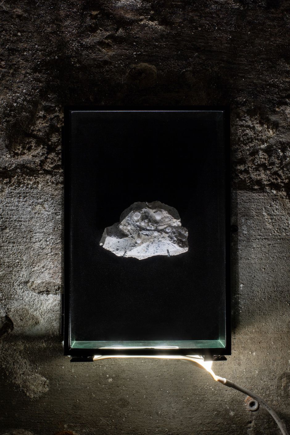 材料: 水泥殘垣,沙,玻璃展示盒,燈帶