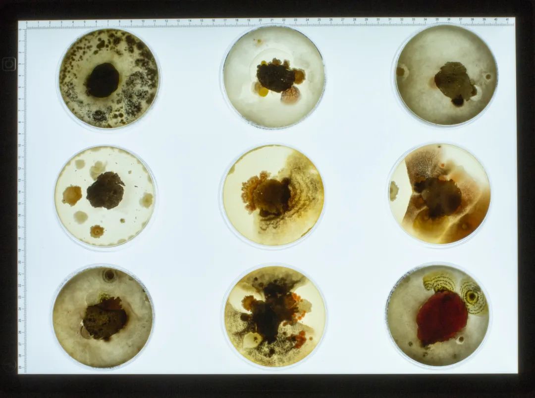 材料:顯微鏡,化學器具,口香糖,培養皿,營養瓊脂,發光板