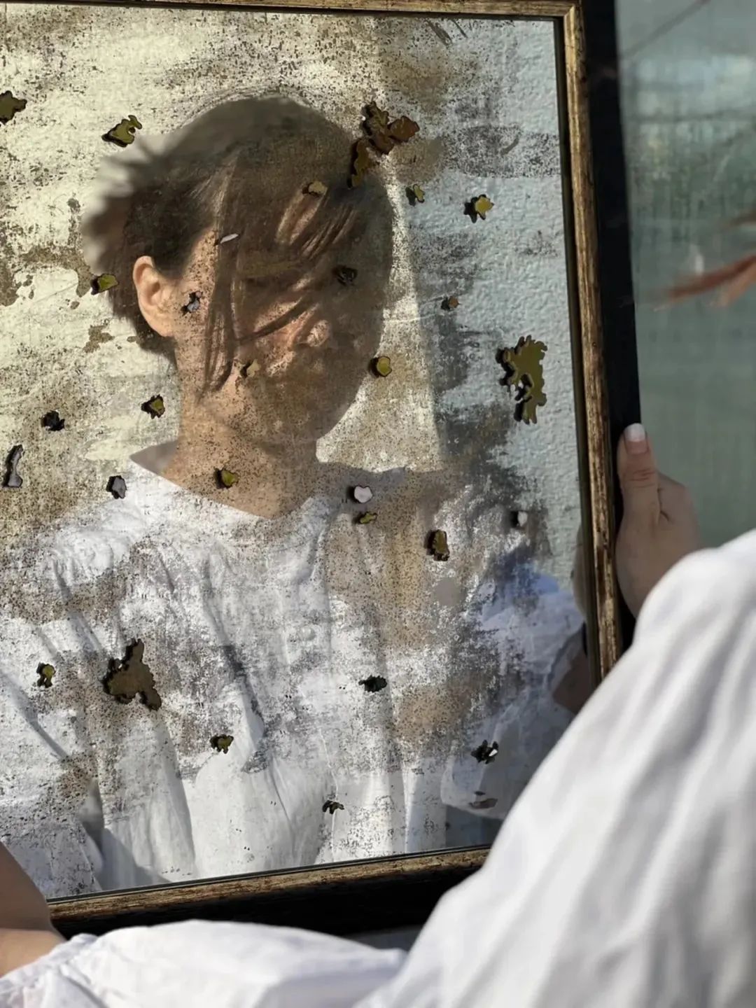 當我抬頭看著整個作品時,它真的像是一片時間的碎片,帶著氣味、光芒,甚至聲音在我面前凝結(jié)。