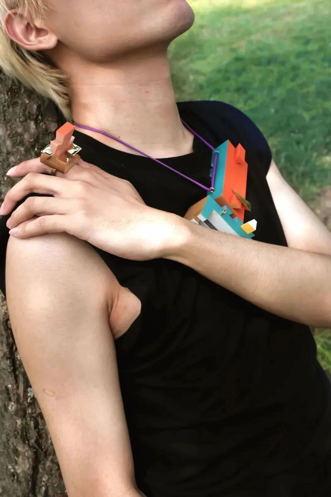 作為珠寶設(shè)計師,我希望通過我的創(chuàng)作打造一系列可以探索記憶和個人連接的作品。從個人回憶中汲取靈感,我著迷于人們與過去的持久紐帶以及記憶的保存方式。我認識到色彩在捕捉記憶中的重要性,因此我巧妙地結(jié)合色彩、形狀和材料,喚起這些珍貴的經(jīng)歷。