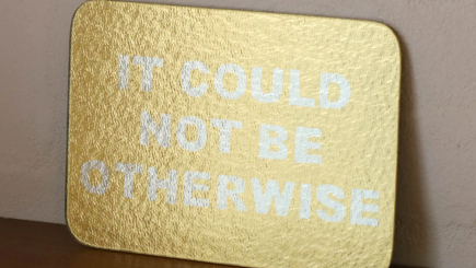 在本次展覽中,Brand采用傳統的燙金工藝,在廢棄玻璃制品上貼上文字,顛覆了垃圾與寶藏的概念。她對對話和聯系時刻的興趣通過在以前的玻璃頂桌子上的鍍金公告找到了新的機會。她的作品將精選的材料與簡潔的短語相結合,在喜劇和悲劇之間搖擺不定。