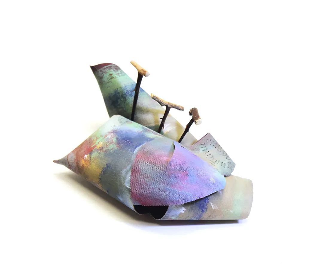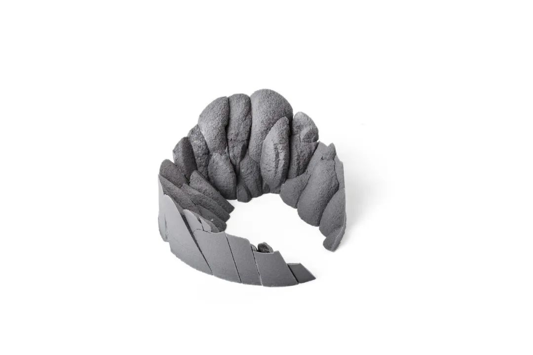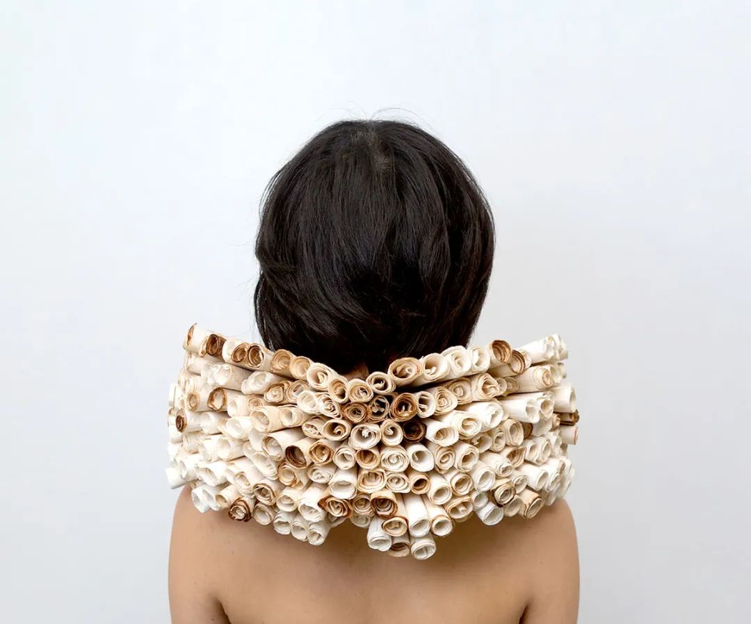 “BABS 很高興從 2023 年 5 月 24 日起舉辦 Daniele Papuli, CARTH? – ? – PORTER 的個展,藝術家在展覽中將雕塑和設計物品與專門為此場合創作的珠寶系列相結合。應畫廊的邀請,Papuli 為 BABS 藝術畫廊創作了這些可穿戴藝術品,成功地將輕盈與場景視覺沖擊力結合起來。事實上,用于制作它們的色彩鮮艷的紙張,通過手工疊加和切割,吸引了觀察者的眼球,同時對佩戴者來說非常輕便。”