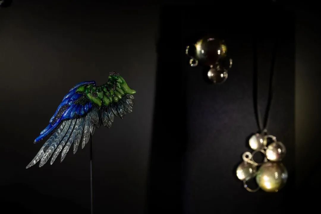 這個展覽完全取材于 RAM 不斷增長的收藏,在慶祝當代珠寶的同時強調從新的角度(有時是字面意思)考慮它。例如,有些胸針的展示方式會將注意力集中在背面而不是正面。雖然佩戴一件衣服時背面可能是看不見的,但藝術家可能仍然會利用它是佩戴者與之互動的一面這一事實——延續正面的元素,添加銘文,或者至少,深思熟慮地融入它進入整體構圖。