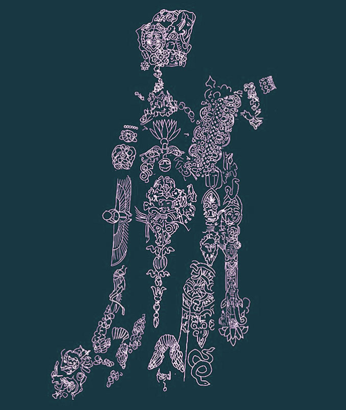 無題是一系列相對簡單的吊墜和戒指,但意義深遠。每件藝術品均采用銀或 24 克拉金鑲嵌在銅合金上的設計。這些嵌入的形式是無辜或無意義模式的投影,旨在完全無害且不可能冒犯任何人。