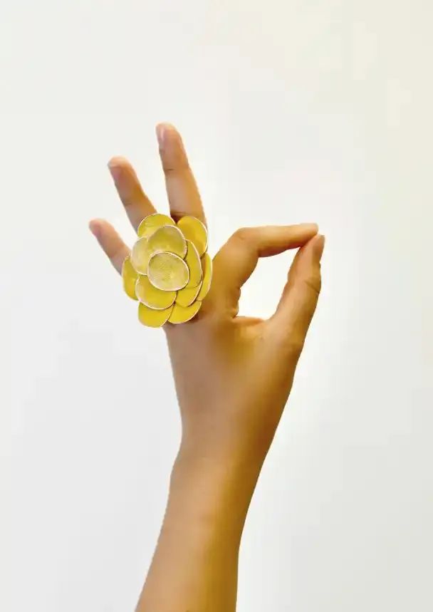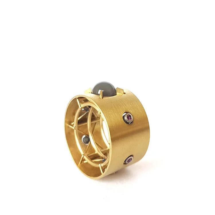 Heather Guidero 作品中的圖形線條、紋理和圖案的靈感來自現代主義設計、時尚和城市建筑元素,并轉化為符合道德來源的金銀。該系列尤其以充滿活力、發光的蛋白石為特色。Guidero 的創作天生可穿戴,是對體積、運動和圖案的原創探索,最終轉化為身體上的個人互動雕塑。