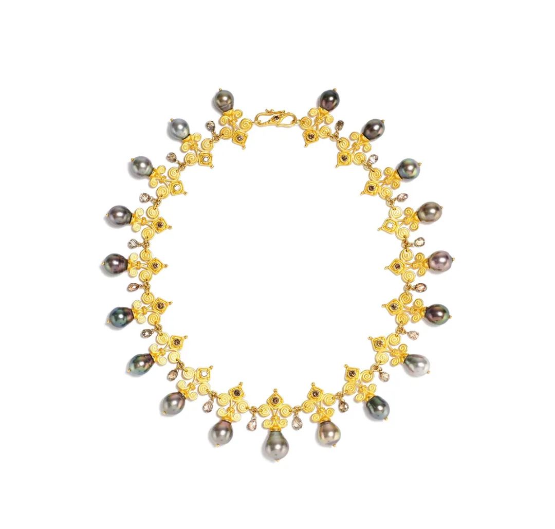 18K Yellow Gold, Tahitian Pearls and Brown Diamonds