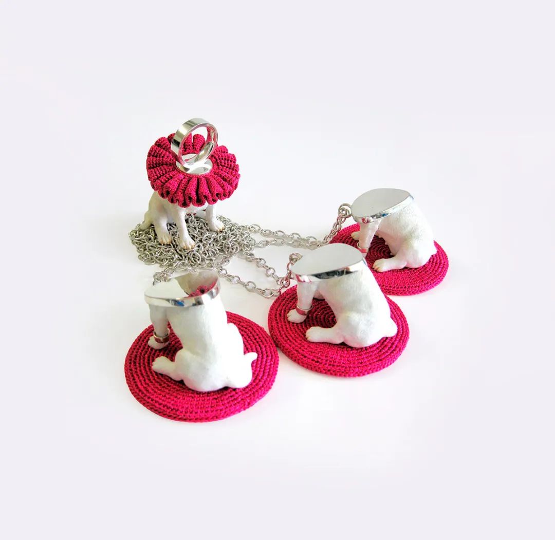 這些色彩鮮艷的串珠項鏈由 Manon van Kouswijk 制作,在墻上作為一組展示時,既具有圖解形式主義,又可以隨意、愉悅地穿戴在身上。第一系列名為《建筑和身體的珠子》,去年在 Alta Forma 的“墻臂和桌腿”展覽中展出。在第二系列作品中,Manon 將早期作品中體現的理念推向了新的邏輯,但令人驚訝的點。