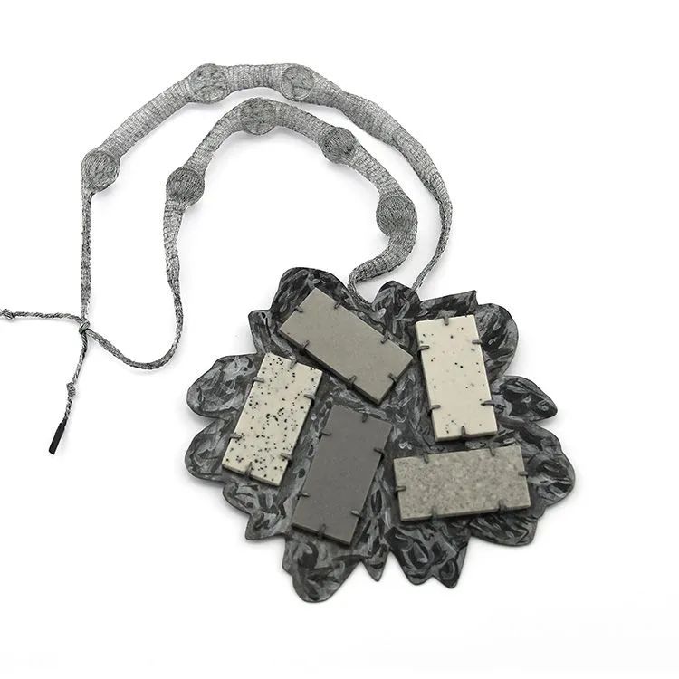 小島隆制作的小型雕塑也是可穿戴的藝術品。他的珠寶靈感來自建筑、自然和科學。