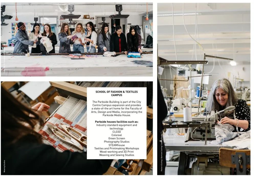 數(shù)字工匠培養(yǎng)體系 :學(xué)院擁有全英頂尖的印染工坊、數(shù)字刺繡設(shè)備,同時(shí)開設(shè)元宇宙設(shè)計(jì)、AI藝術(shù)實(shí)驗(yàn)課程。