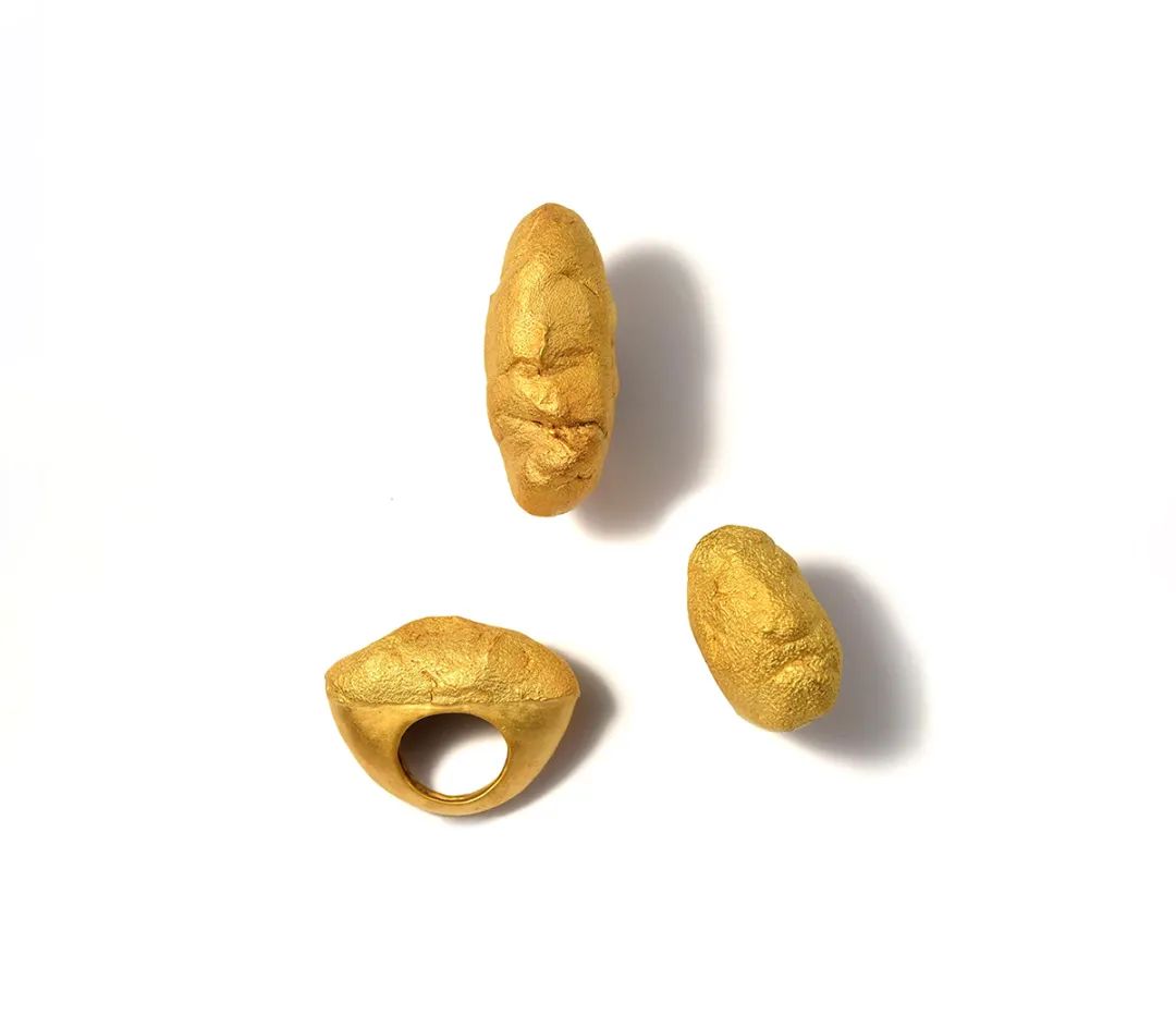 Cast gold from 3D print, horn; Box: laquer on bamboo, boxwood