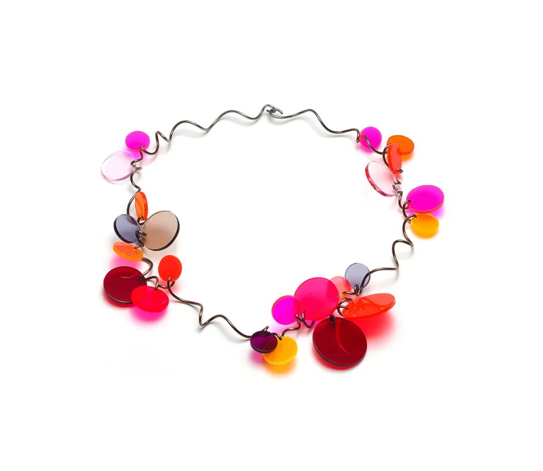展覽展出了 Jennifer Merchant、Emiko Oye 和 Nikki Couppee 三位藝術家的作品,他們將塑料變成了可穿戴的藝術品。塑料無疑是我們日常生活的一部分,也是經常被忽視的珠寶材料。但這種從普通到壯觀的轉變提出了一個問題:我們如何賦予物品價值?什么是珍貴的?每位藝術家都有自己獨特的方式來解釋這些問題,并通過利用直覺重新改造材料,而顏色仍然是作品的關鍵組成部分。