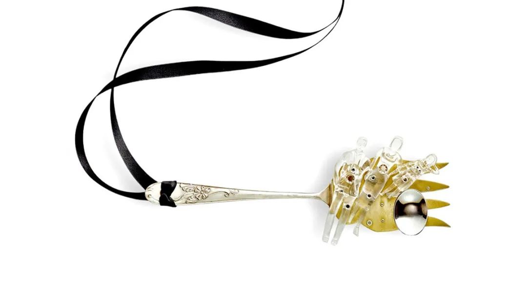 《Don't Dare》 是一根氣勢宏偉的花崗巖針,雕刻成武器的形狀,象征著抵抗、緊張和脆弱,體現了推動變革所必需的冒險精神。這件作品以及Empar Juanes 的其他系列作品《Tensed》都反映了她對珠寶的態度:不斷突破材料的極限。它不是關于從懸崖上掉下來的欲望,而是關于在邊緣保持平衡的刺激。藝術家認為,充分體驗生活需要擁抱脆弱性。通過對個人空間的探索,她在佩戴者和觀察者之間建立了強烈、直接、無言的對話。