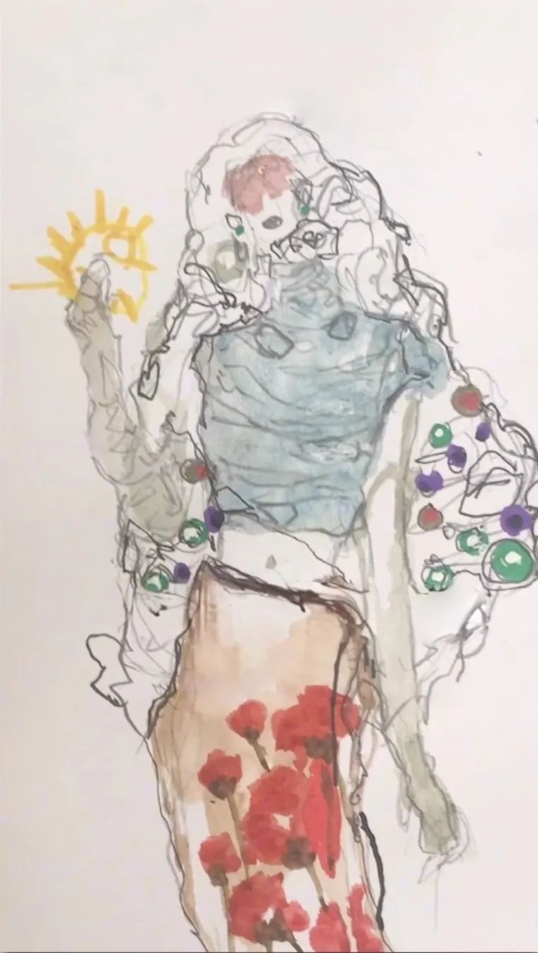 高二的社團活動,他展現(xiàn)了驚人的行動力與創(chuàng)意:他找到氣質(zhì)出眾的學姐做模特,在北服門口的裁縫店花500元買下一件舊婚紗。他參考了2000年藝術家Alexander McQueen的行為藝術,播放著the XX的《Angel》,讓學姐身著婚紗走上舞臺。接著,他和另一位社員拿起三罐噴漆,在婚紗和舞臺上肆意揮灑!煙霧彌漫中,坐在第一排的校長全程目睹了這場震撼的“首秀”。這場看似叛逆的表演,正是Louis無畏探索和強烈表達欲的早期迸發(fā)。