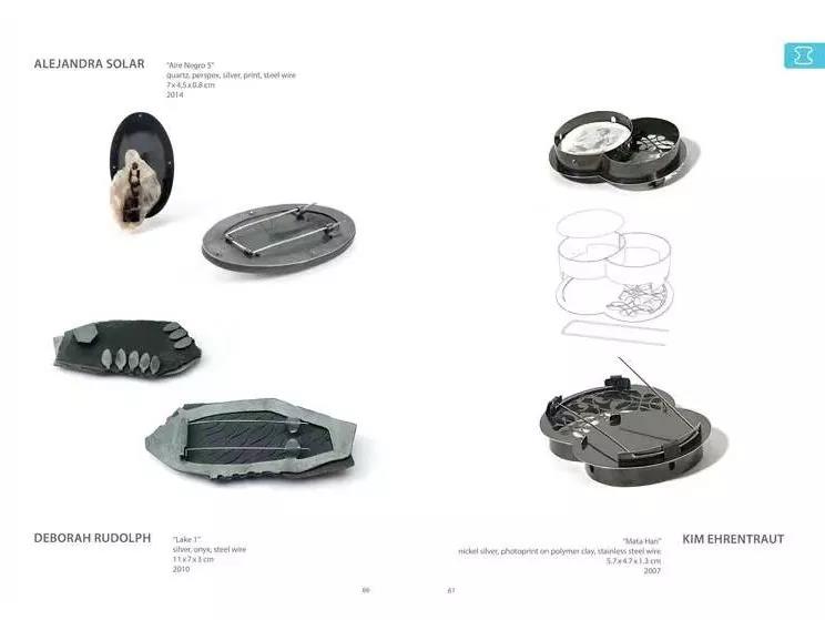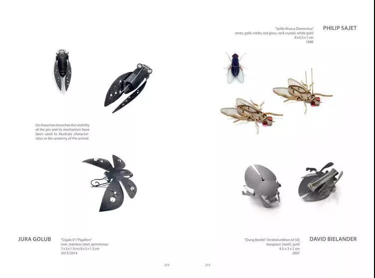 X:每一種類型的背針介紹里都列舉了大量首飾藝術家的胸針作品作為實例進行展示,讀者可以在這本書中看到一些平時熟悉的胸針作品的背面或者是背針的細節圖和手繪的背針結構解析圖等。如果你有一定的金工基礎,可以從這些介紹中了解到這些背針應該如何被制作出來,也能從這些實例中看到每一位藝術家是怎樣來設計他們的背針,讓背針與胸針融合為一個整體的。此外,在每一種背針介紹的最后都會集中展示胸針作者本人對自己作品的介紹。
