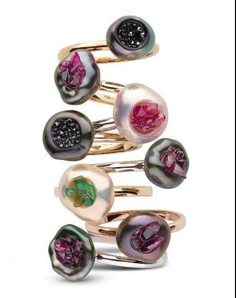 來自洛杉磯珠寶品牌 Little h 的設計師 Hisano Shepherd 也致力于打破常規,在珍珠里“種”起了五彩的水晶。