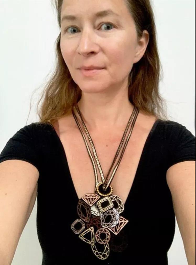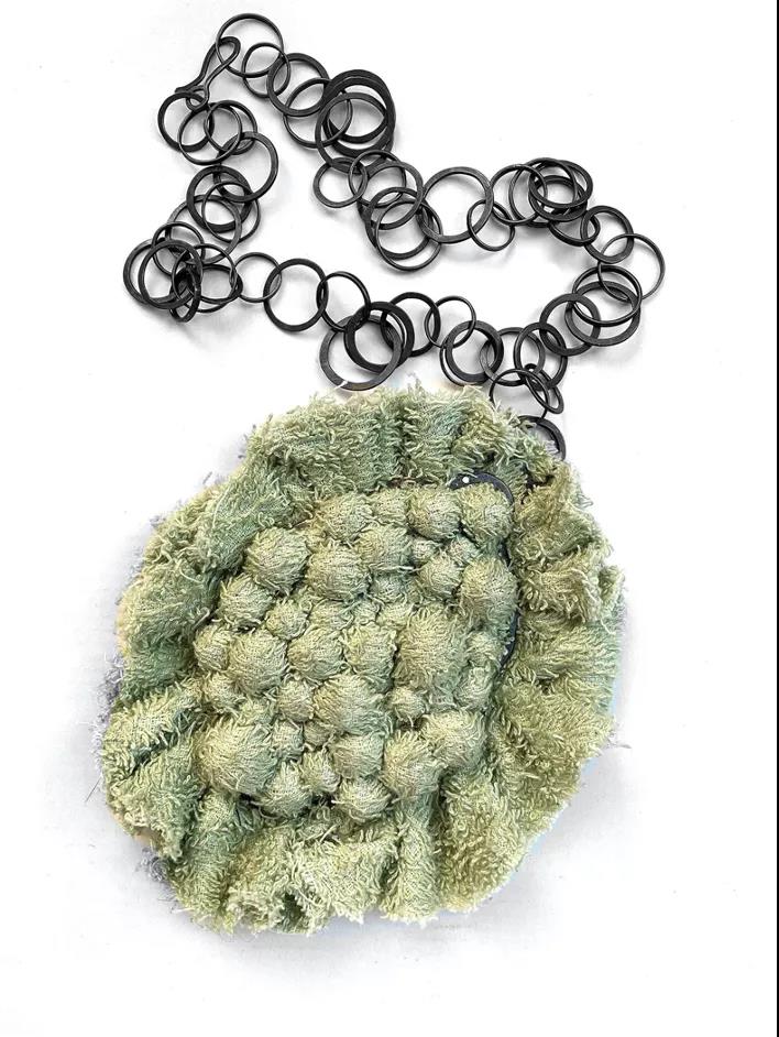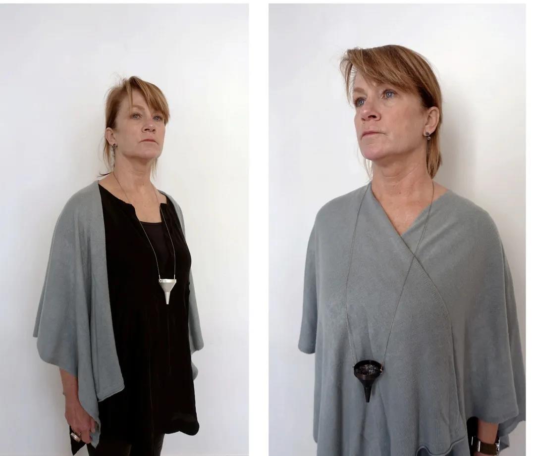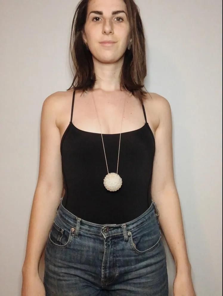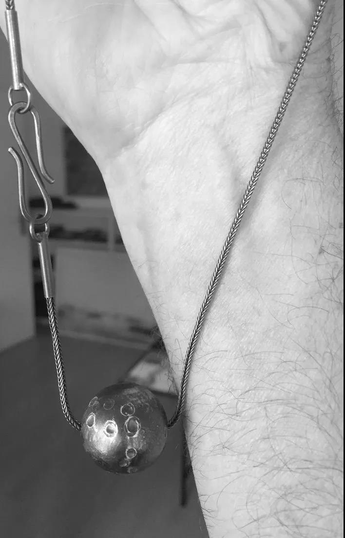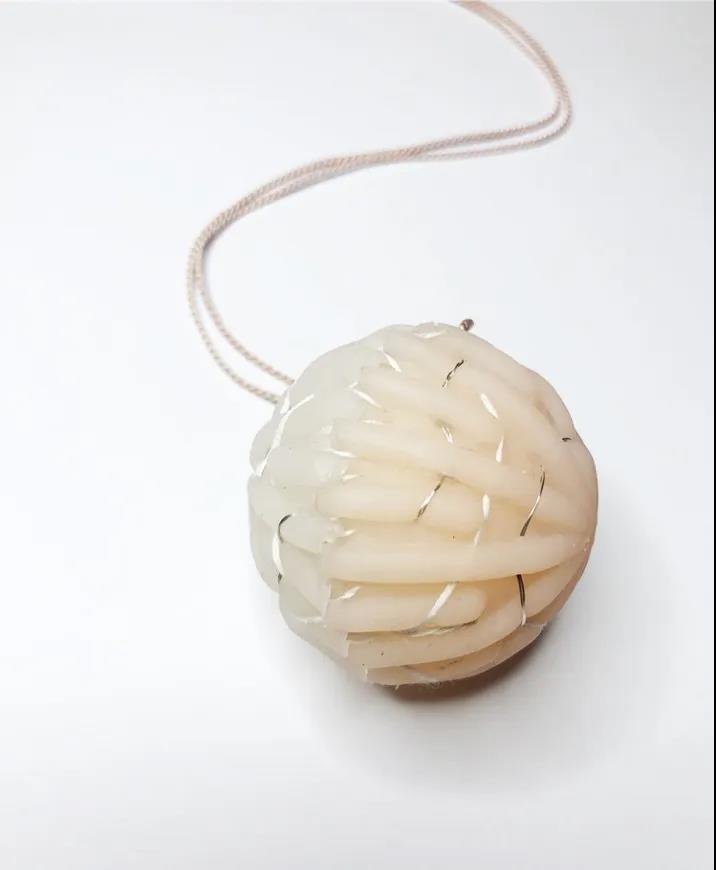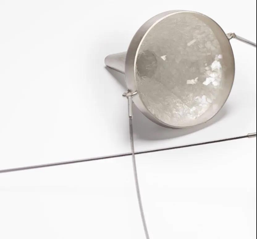 Biba Schutz的作品表現(xiàn)了她在這個特殊時期身心、創(chuàng)造、情感上的躲藏——球體被包裹與隱藏,他們的秘密被擋在了外面;而可轉向的項鏈則能讓你在一側可以看到包裹的球體,在另一側看到的卻是隱藏和被保護的球體。作品的每個部分都有著脆弱、經(jīng)歷、恐懼和某個時間的不同含義。
