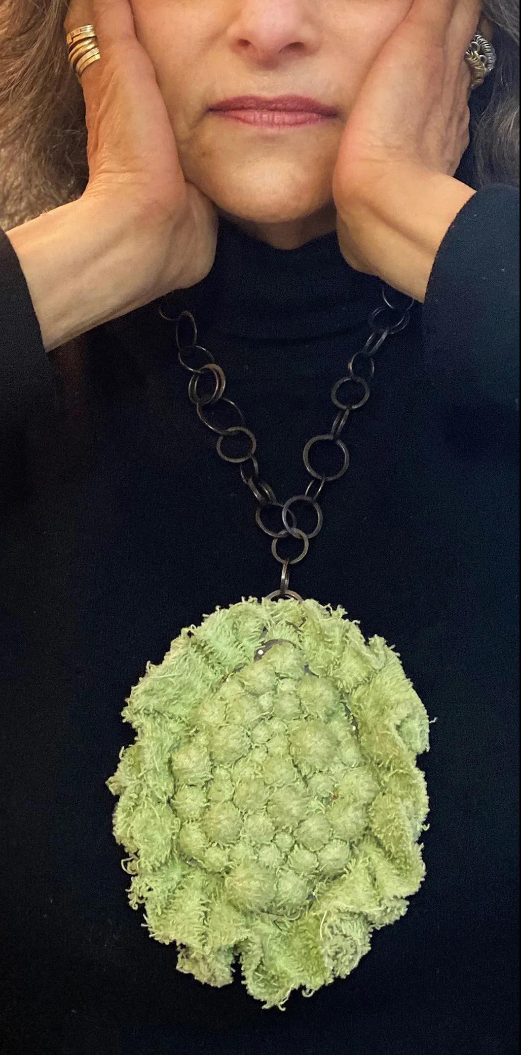 Gallery Loupe的Patti Bleicher已邀請40多個藝術家對COVID-19做出回應。這本應該是一個球體和一個吊墜。