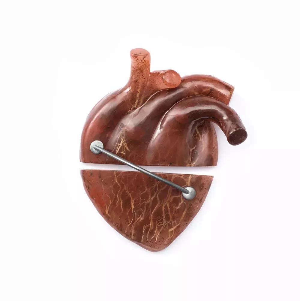 時光流轉,社會及其對美的定義也一樣。被“截肢”了的桌子作為胸針的基座,胸針在未佩戴時成為裝置的一部分。 由此,首飾既與人體有關,又與另一個物體相關,與它進化成裝置的物體有關,與它所身的房間有關。