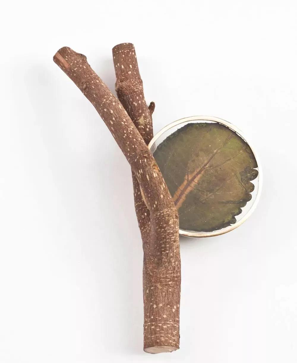 蒼白的葉子松散地掛在樹枝上,模擬、植物的形態。葉片與樹枝共同組成項鏈的一部分。