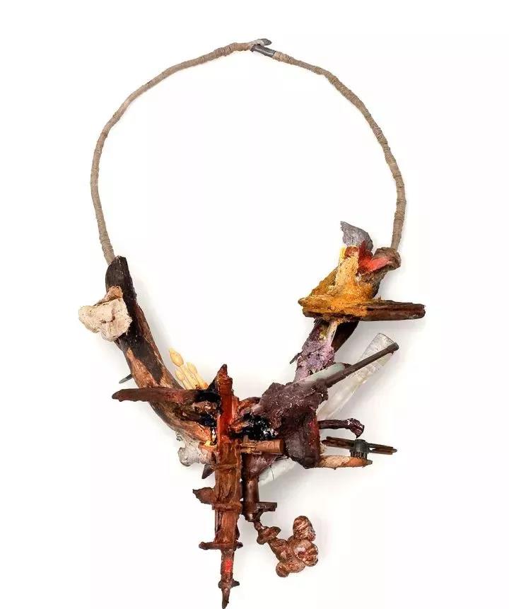 這條項鏈被放在木箱里,仿佛是在一次科學考察的偏遠叢林中發現的。就像近幾十年來我們慢慢沉浸在塑料中而出現的東西一樣。