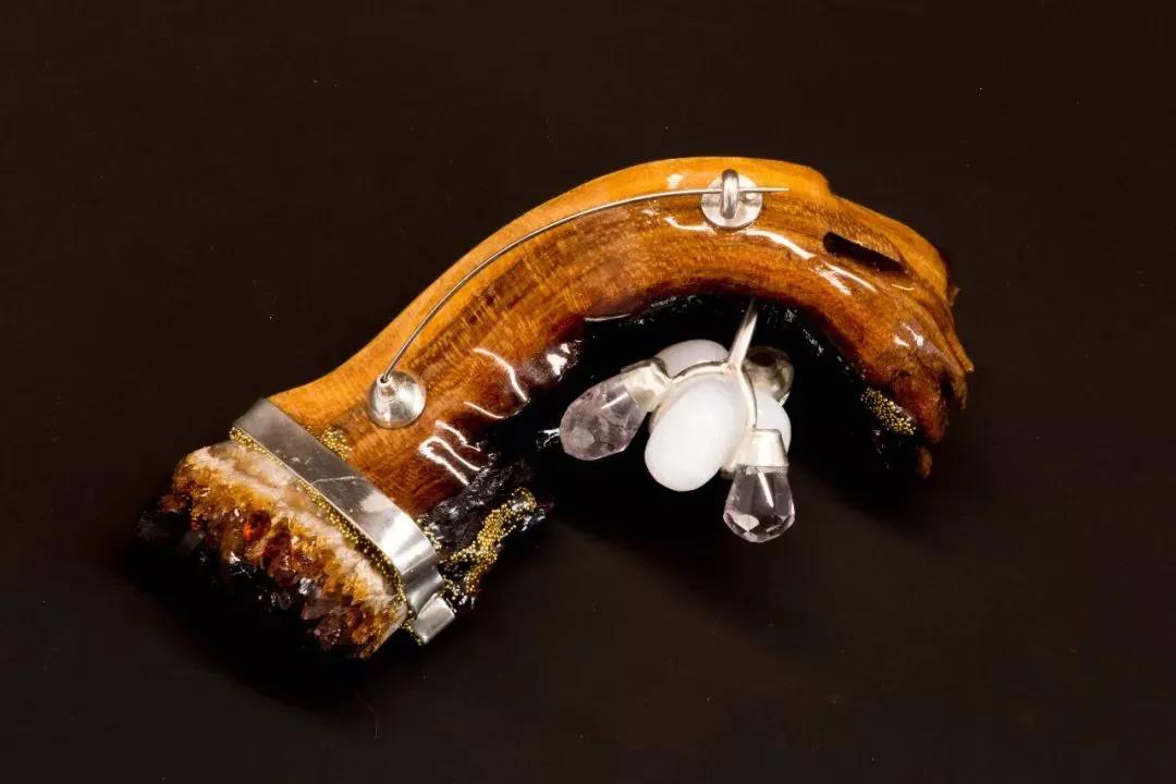 plum wood, silver 925, citrine, agate, amethyst, micro-granules.