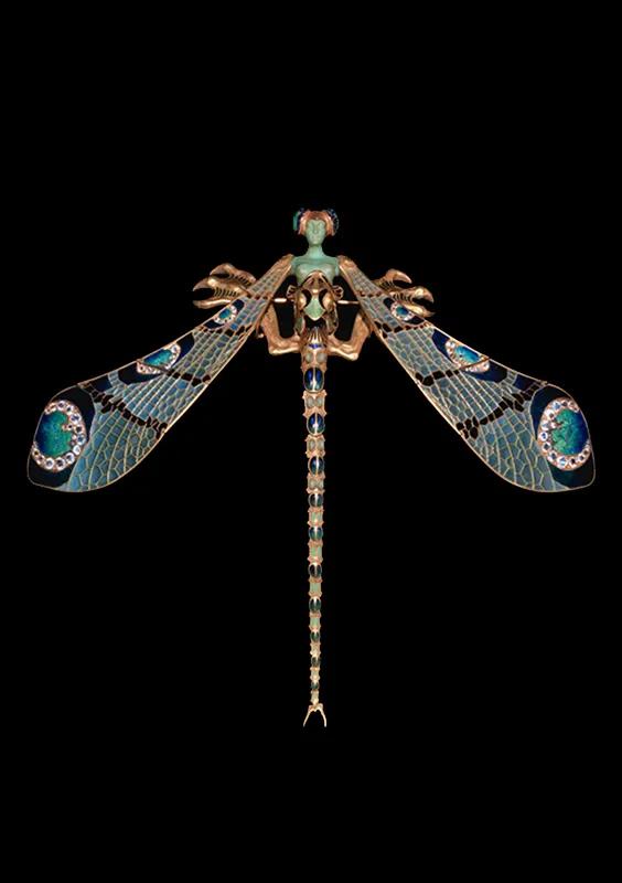 新藝術主義設計師突出表現曲線與有機形態。他們積極向大自然取材,創作出以詮釋自然主義與女性魅力的新藝術首飾,此時期出現各種昆蟲主題的珠寶,特別是蜻蜓和蝴蝶。