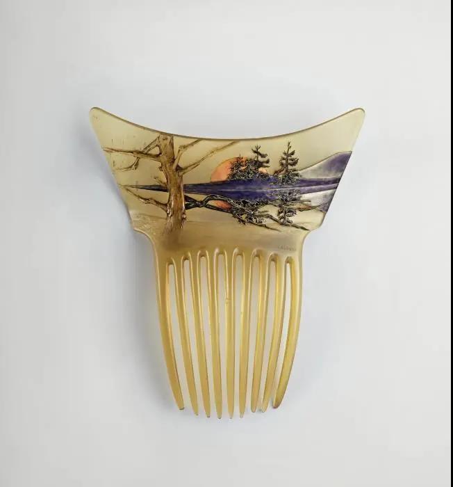 新藝術運動時期的首飾藝術風格受日本藝術的影響更直接地體現為對西方傳統首飾類型與形制的突破。除了項鏈、手鐲、戒指、胸針等西方傳統首飾的常見形制之外,“新藝術”時期最流行的首飾還有形制豐富多彩的梳子、發簪。