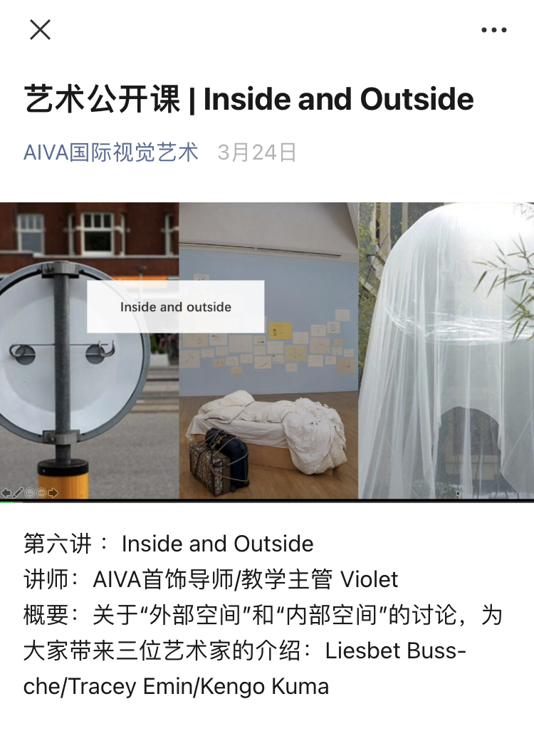 隔離在家的難熬時間里,AIVA導師們用聲音和圖像分享了最有趣的藝術干貨,從不一樣的視角解讀藝術家及作品,陪伴身處各地、無法出門的同學們在藝術中獲得慰藉。
