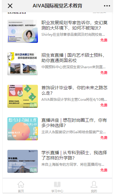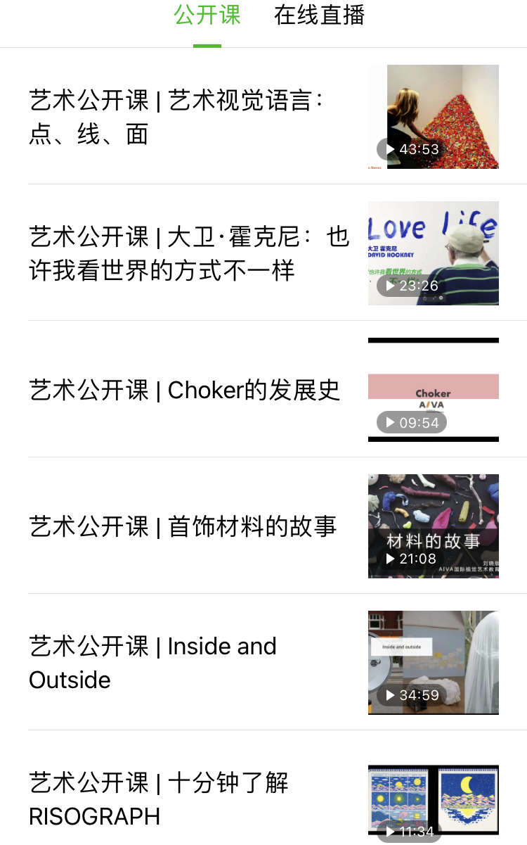 今年2月至4月,AIVA邀請了首飾、服裝、平面、純藝術等專業(yè)的多位導師,每周二在公眾號、B站等多平臺上線了12節(jié)免費藝術公開課。