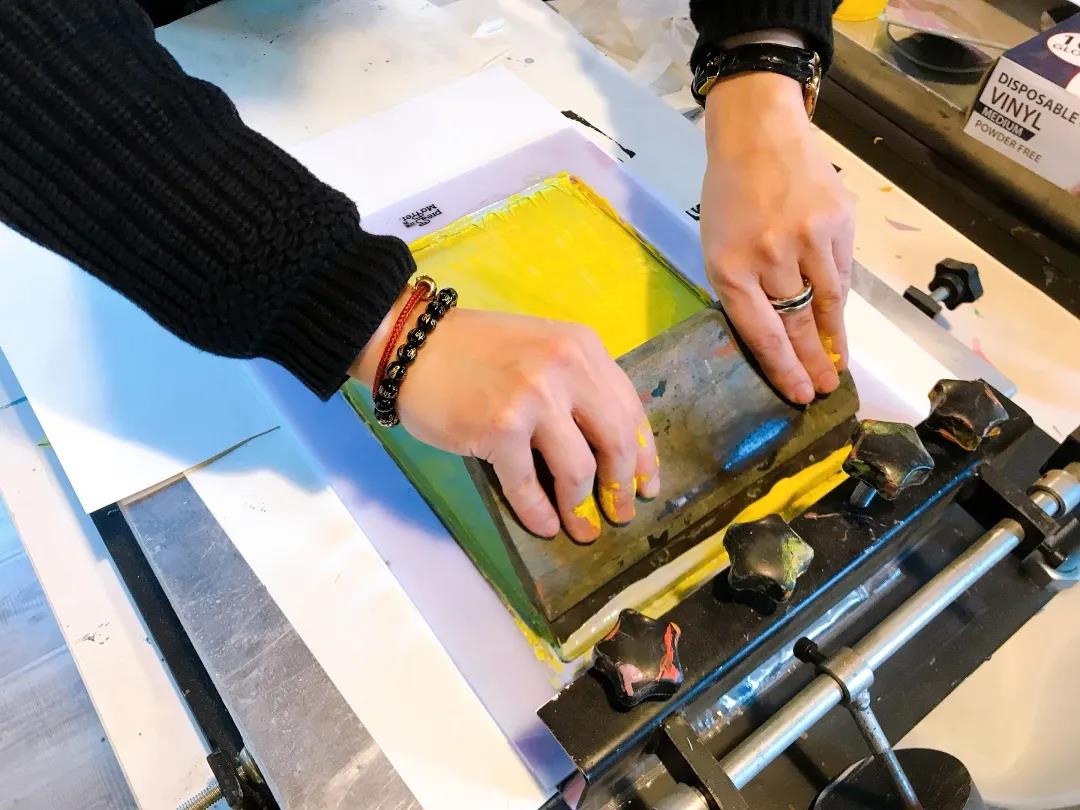 ▲ 在之前AIVA的藝術通識課上,同學們和Chen老師一起動手,制作了自己的單色絲網版畫作品,如果你想看到課堂現場可以戳這里回顧。