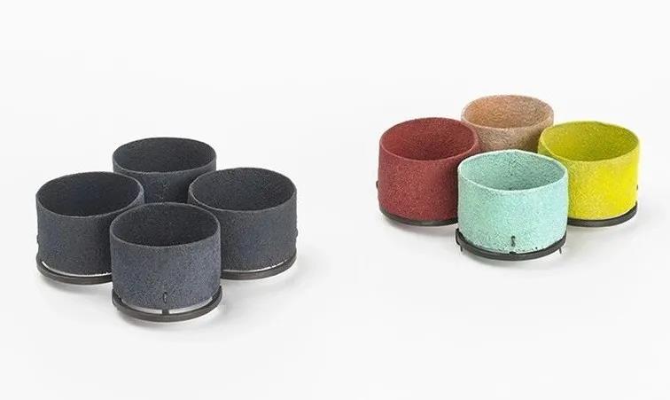 一邊,暗灰的琺瑯表面定義了形態、組成及邊界的細節;在另一邊,色彩鮮亮的圓柱體覆上了純色琺瑯,各自占據了原本可能屬于其他色彩的位置。