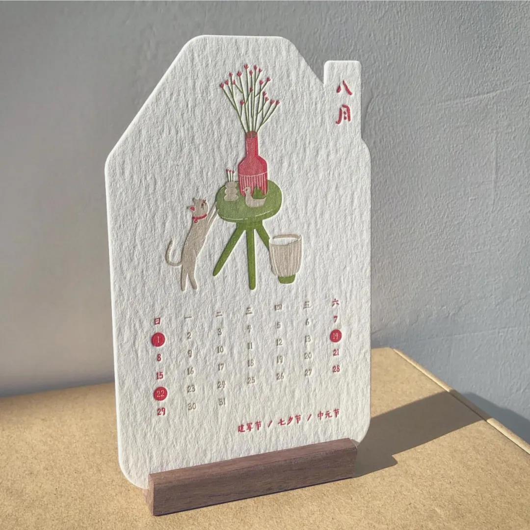 活版印刷月歷的設計目的則更為商業化,年月日的排列組合功能性體現地非常強。活版印刷月歷的尺寸大多與明信片相似,適合擺放在桌面上或者是貼在墻上,實現其功能性與裝飾性。