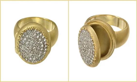 一種古老的稱為“波吉亞毒環(huán)”的珠寶,采用在環(huán)內(nèi)空出有隱蔽隔室來儲存毒物,但也被用作儲存香水,或個人物品以及宗教文物。這樣一來,這些戒指就類似于小盒,不同的是,精妙和隱蔽是設(shè)計毒環(huán)的關(guān)鍵。