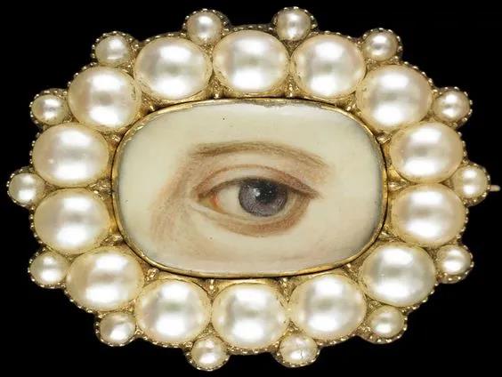 “那就是在十八世紀和十九世紀,特別是在英國,以人像為特征的珠寶。特別有趣的是這些微型畫的一個子集,只描繪眼睛。因此,大多數(shù)觀眾將無法識別被攝對象,而佩戴者卻有著直接的聯(lián)系。維多利亞女王佩戴了一件逝去丈夫的紀念品,象牙上的一個縮影,情人的象征,因為眼睛是靈魂的鏡子。其中一些眼睛胸針的背面有一綹頭發(fā)。