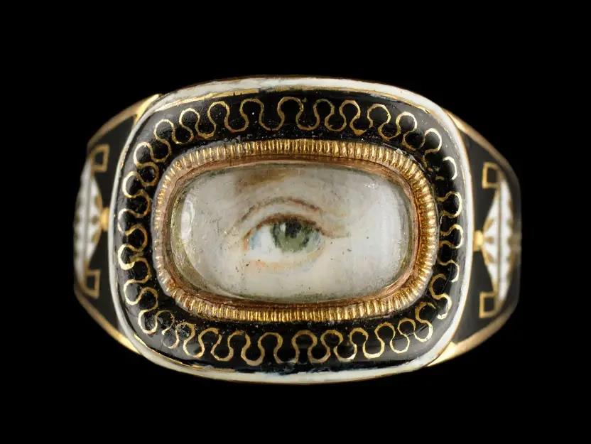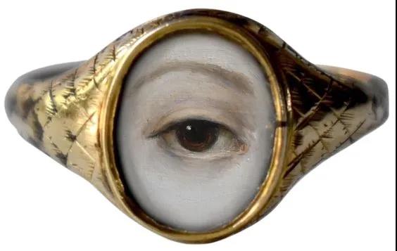 維多利亞時期一只畫有愛人眼睛的璽戒。A Lover’s Eye portrait in an authentic Victorian gold signet ring