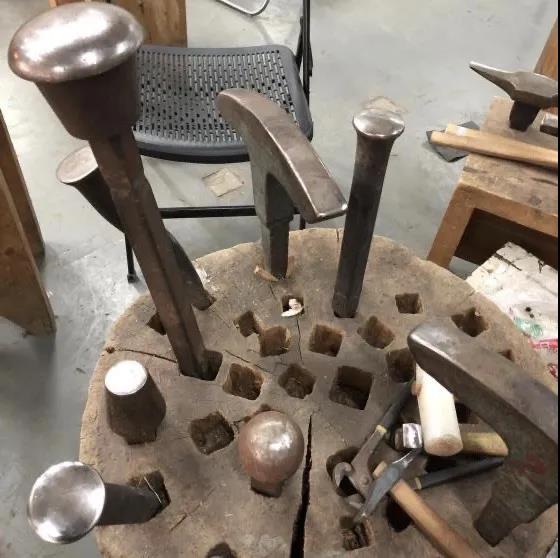 再回到金工專業(yè)本身。我一直都覺得我們專業(yè)被放在設計學院重點專業(yè)進行培養(yǎng),由于金屬工藝專業(yè)的特殊性,在我們學習器物制作的過程中,鍛造技法可以說是必不可缺的基礎。因此,王克震老師和學校毫不含糊地為本專業(yè)師生定做購買了數(shù)十只鐵砧,以方便學生們在鍛造技藝上的訓練。