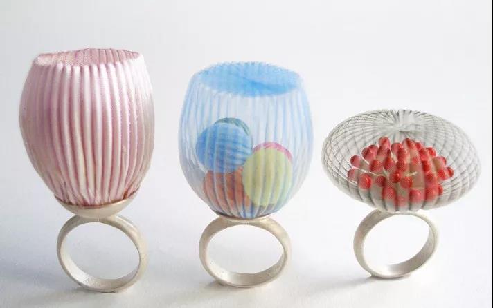 比如德國首飾藝術家Anja Eichler則擅長用現成品來作為首飾的基礎材料。所以,在她的作品中,經常能見到現成紡織品解構再重新架構而成的有趣首飾。