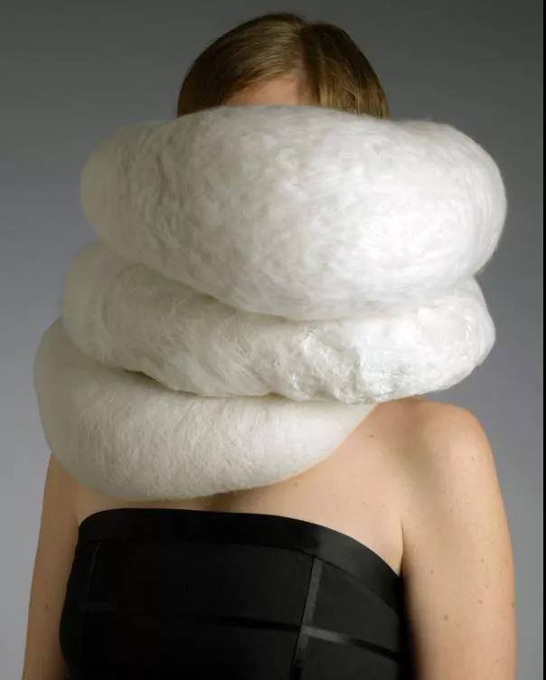 與Anja相似,Camilla用可識別的日常物品、和二手衣服為身體創造了現成品和概念性的物品。她的創作重點同樣在于,使不可見的(空間裝置)以及被遺忘和忽視的東西可見并重生然后佩戴在活動的身體上。