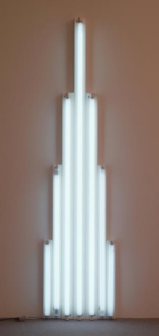 七個熒光燈管呈豎直階梯式被固定在墻上,