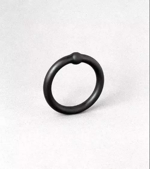 在當(dāng)代首飾先驅(qū)Otto Künzli最著名的< Glod Makes you Blind>由合成橡膠和18K金制成的戒指這枚金戒連同上面的金球一同被覆蓋于黑色的橡膠管里面,我們只能看到凸起的小球,但從外表上看,無(wú)法得知其實(shí)那是一粒純金球。在這里,這枚金球或者說(shuō)黃金,幾乎可以等同于傳統(tǒng)首飾中,材料價(jià)值的象征。那么其實(shí)這件作品最大的物質(zhì)價(jià)值恰巧隱藏在廉價(jià)的黑色橡膠下。