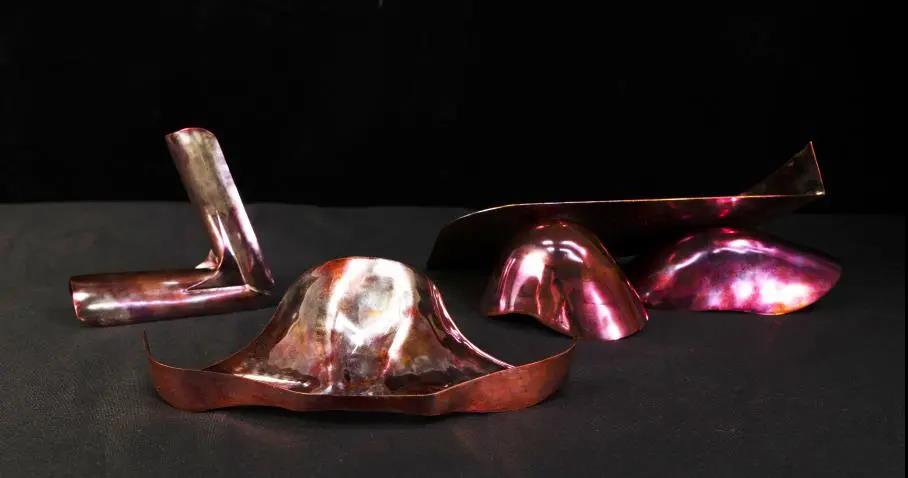 這一套看似風趣幽默的作品,背后不僅蘊含著對中國特有的勸酒文化的反思,更令人眼前一亮的是,她的作品中所運用的傳統鍛造工藝和鏨刻手法以及后期對于銅箔的運用,在時下藝術形式求新求變的環境中,她的作品使得我看到了南藝金工人對于傳統技藝的堅持。