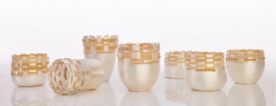 他的作品除了金工技法以外,還需要用到竹編織的相關技藝。這自然成為了制作設計的難點。當我問到的時候,他卻說:“在手工制作畢業創作作品的過程中,也遇到了許多大大小小的問題。一是在竹子的韌性方面,無法及時保留水浸泡的柔韌度,而且在形變上和彎曲的地方還是無法以手工的方式去編織一個十分規整的形態;二是在第一個造型完成之后,如何將后面的編織造型做自由的變化和變形,以不違和的觀賞方式使所有的器型變成一個套系;三是對于制作完成后的保存和打磨如何做到不破壞編織。”即便如此,從他最后的畢設展現中,我們看到了他仍然克服了重重工藝的“硬”困難,給了自己的畢業設計和本科一個Happpy ending。