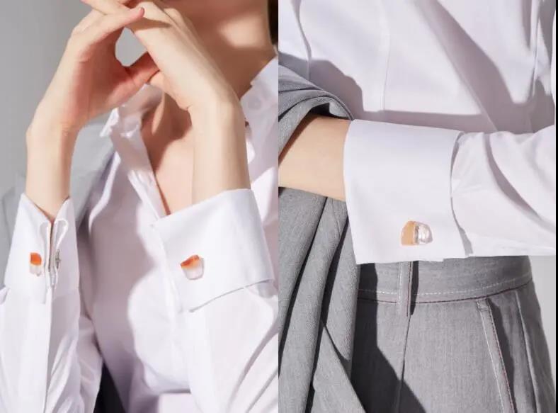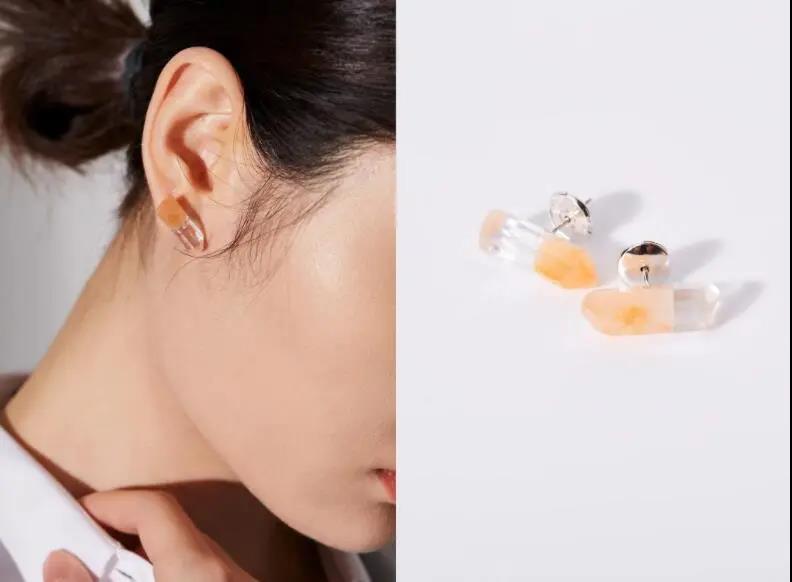 耳環(huán)雖采用了不對(duì)稱設(shè)計(jì),但佩戴時(shí)卻帶來(lái)了一種和諧的平衡與張力。通過(guò)對(duì)透明戈壁石的特殊處理和運(yùn)用,簡(jiǎn)潔的幾何設(shè)計(jì)語(yǔ)言保留了天然的石材特質(zhì),為都市獨(dú)立女性帶來(lái)一份內(nèi)心的平靜。