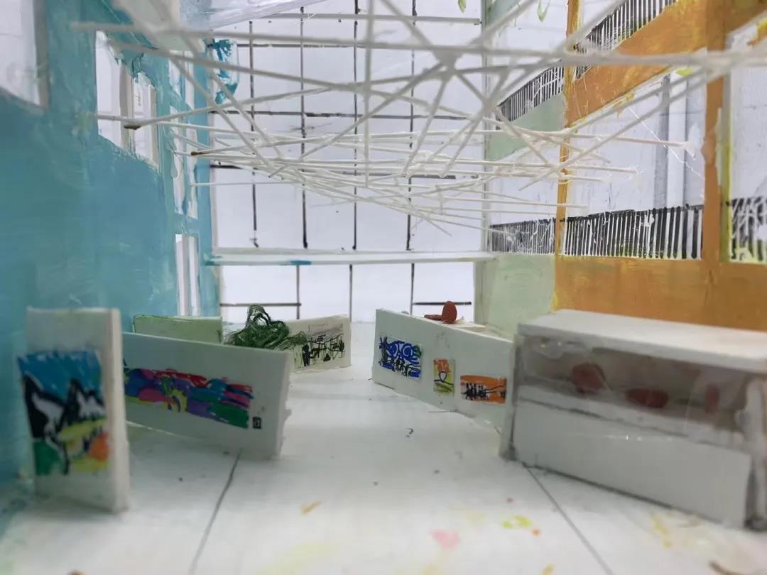 ▲ Yang的雙胞胎弟弟Chen也完全不輸哥哥,同樣是初一的年齡,6次課的時間,他將AIVA學校大樓的中庭改造成了一個非常藝術的展示空間,有滑梯,有連廊,最終的成品讓所有人都直呼“WOW”。