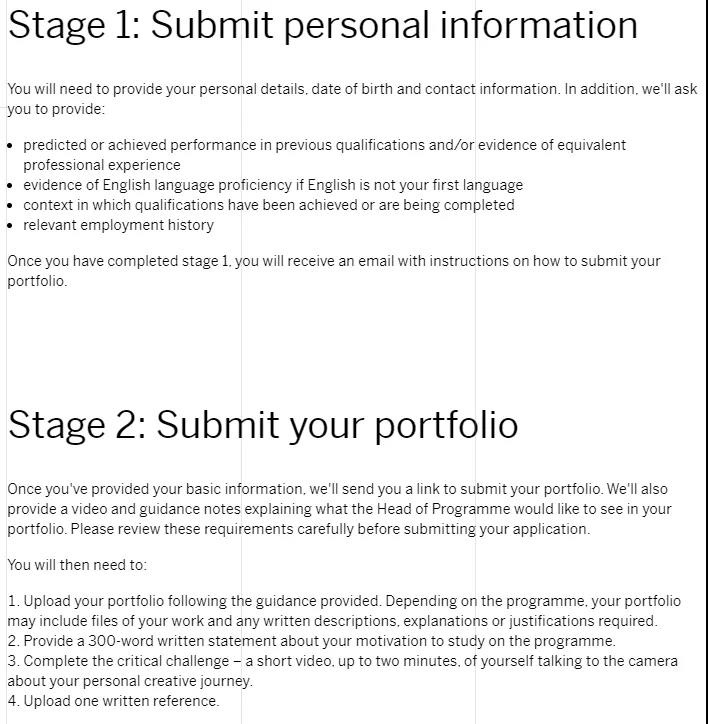 在提供基本信息后,申請人將收到作品集提交鏈接,以及一段視頻及指導說明。按要求提供: