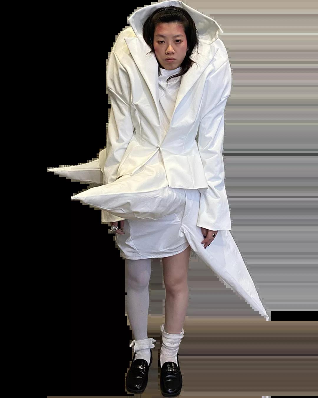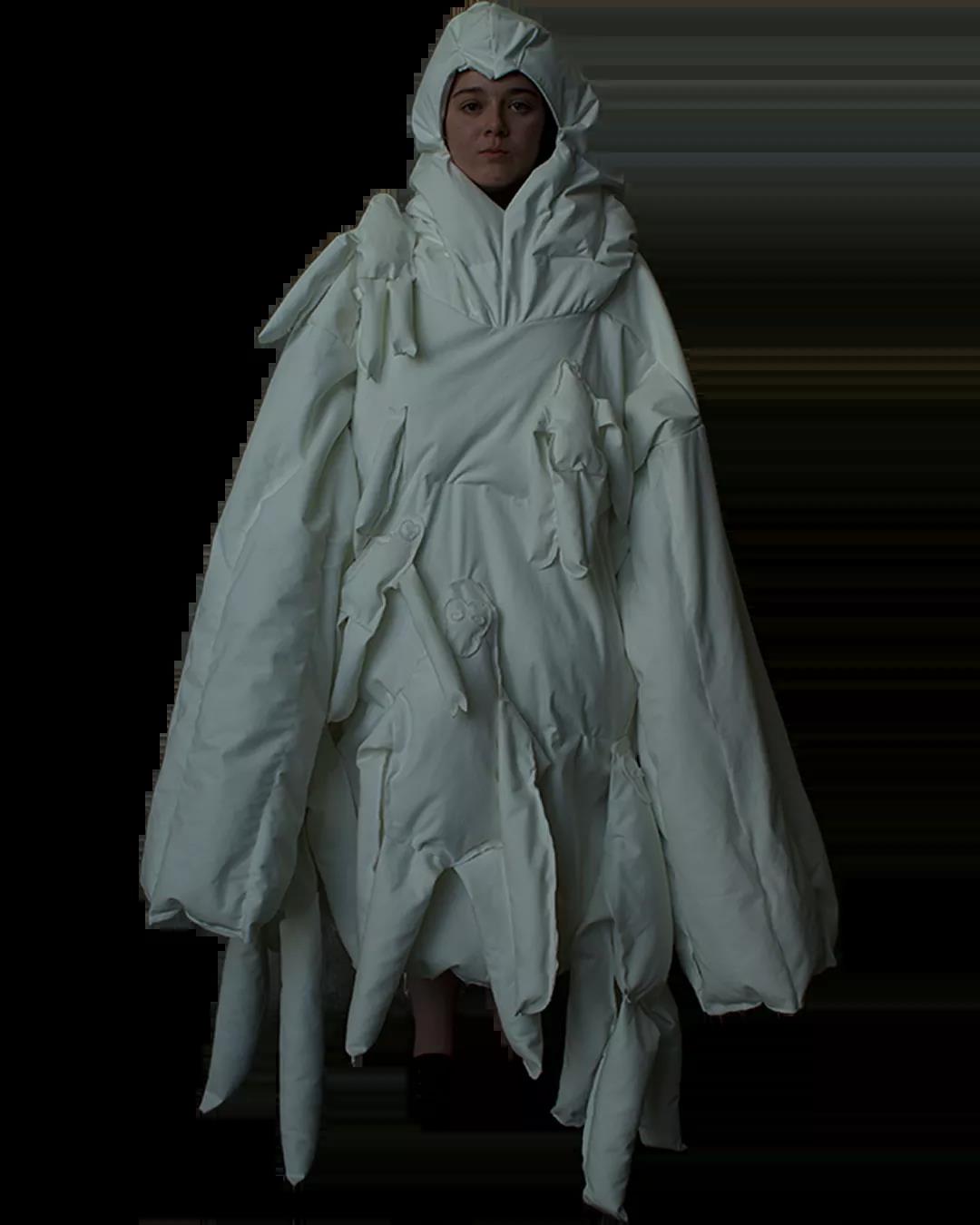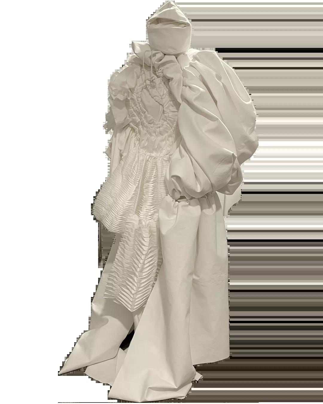 The White Show是所有圣馬丁學生成長的必經之路。作為第一學年課程的一部分,White Show讓學生參與完整實踐研究與設計的過程,掌握包括結構制作、圖案裁剪等技能。當只允許使用單一色彩的面料進行表達時,注意力將集中于面料與廓形的設計。對于設計新人來說,經過這一場挑戰,能夠快速檢驗自己的專業水平,在未來的學習中,更加明確自己的方向,探索時裝設計無限的可能。