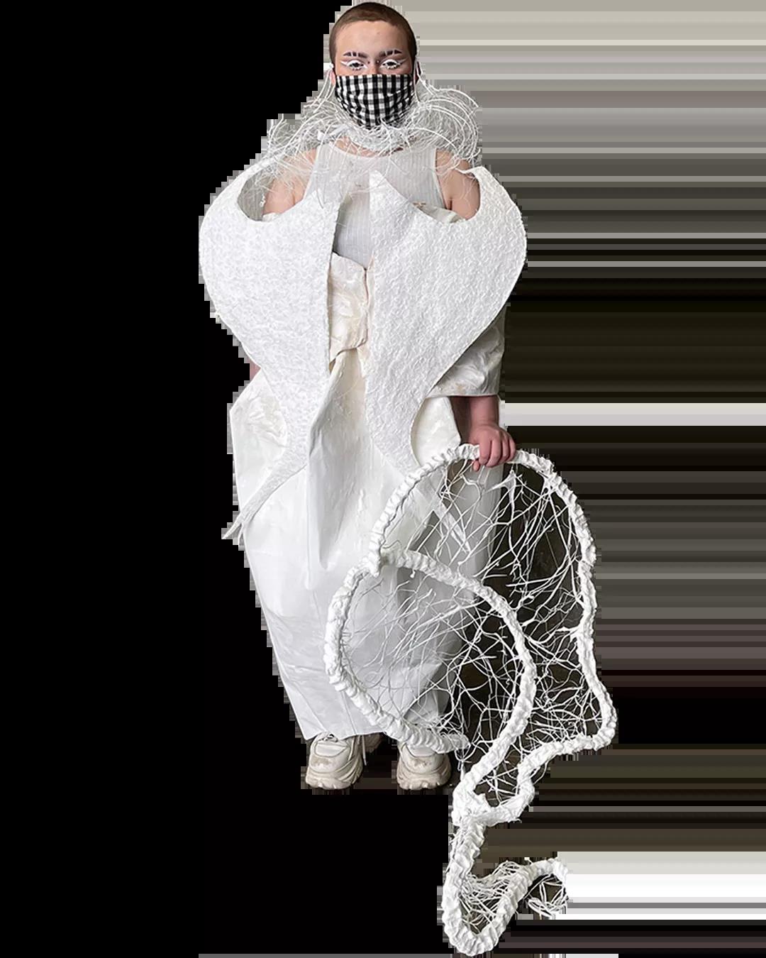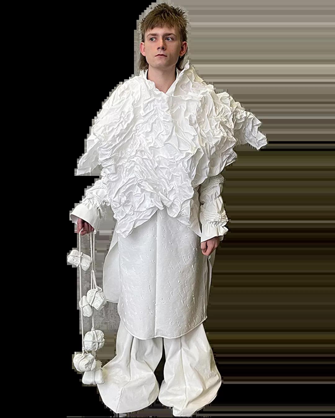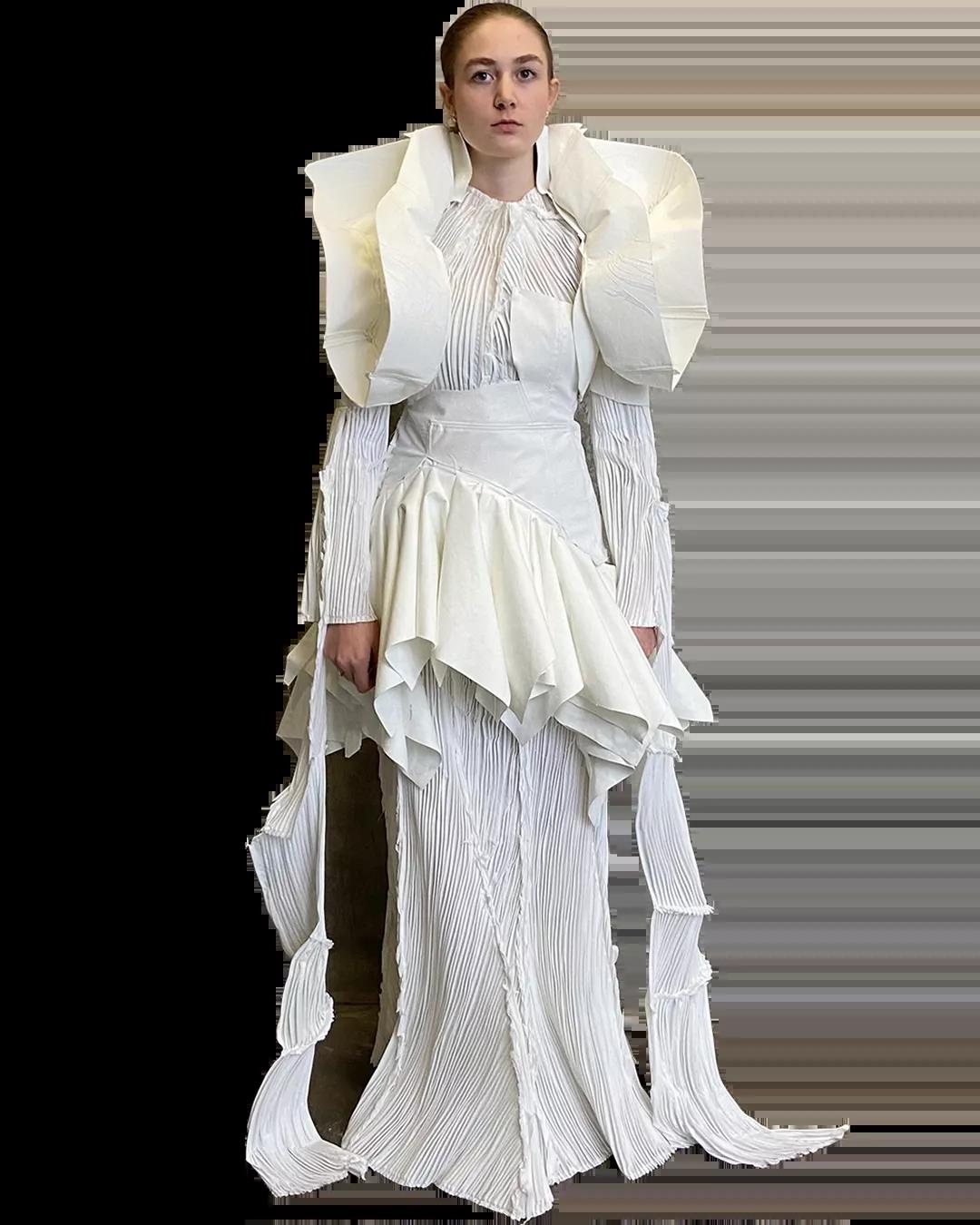 The White Show是所有圣馬丁學生成長的必經之路。作為第一學年課程的一部分,White Show讓學生參與完整實踐研究與設計的過程,掌握包括結構制作、圖案裁剪等技能。當只允許使用單一色彩的面料進行表達時,注意力將集中于面料與廓形的設計。對于設計新人來說,經過這一場挑戰,能夠快速檢驗自己的專業水平,在未來的學習中,更加明確自己的方向,探索時裝設計無限的可能。