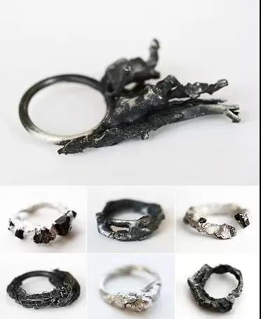 這種肌理效果往往具有出其不意的美感,它的形成真可謂“謀事在人、成事在天”。鑄造工藝肌理的偶然性特征留給了人們無限的發揮空間。當下很多首飾設計作品呈現出鑄造肌理的偶然性審美特征,這種審美特征結合首飾作品的造型、結構、材料以及作者的思考與情緒,表達著一個個故事,一段段情感體驗。